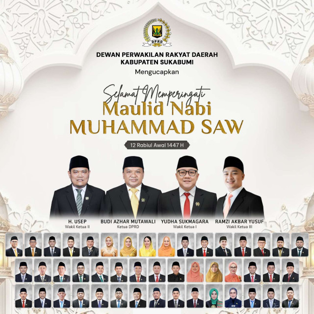 aliansinews.id - Sukabumi, Pimpinan dan segenap anggota Dewan Perwakilan Rakyat Daerah (DPRD) Kabupaten Sukabumi mengucapkan Selamat Memperingati Maulid Nabi Muhammad SAW 1447 H/2025 M.
