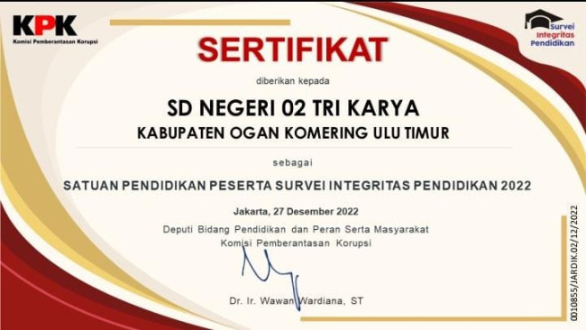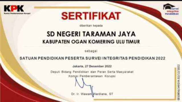 Pada tahun 2022 yang lalu 2 sekolah jenjang Pendidikan dasar di kabupaten Ogan Komering Ulu Timur mengikuti Survey integeritas yang diadakan oleh Komisi Pemberantarasn Korupsi Republik Indonesia