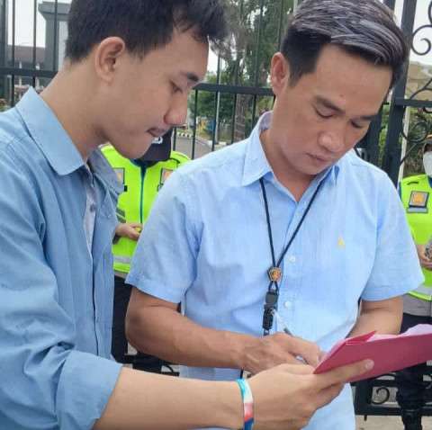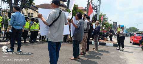 Unjuk rasa di halaman Mapolda Sumatera Selatan berjalan dengan damai, massa disambut oleh perwakilan Polda Sumsel, Katip 1 Unit 2 Tipiter Diskrimsus.