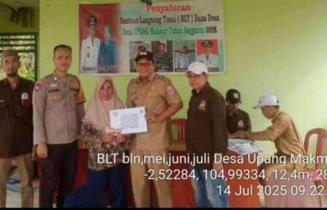 Sebanyak 23 Keluarga Penerima Manfaat (KPM) Desa Upang Makmur Kecamatan Makarti Jaya Kabupaten Banyuasin, menerima Bantuan Langsung Tunai (BLT-DD) Periode bulan Mei, Juni, Juli. Tahun 2025