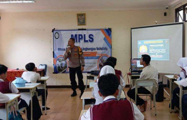 Polres Bogor - Aliansinews id. Dalam rangka mendukung kegiatan Masa Pengenalan Lingkungan Sekolah (MPLS), Bhabinkamtibmas Desa Megamendung Aiptu Sudrajat memberikan penyuluhan kepada para siswa baru di SMK Amerta Megamendung, Kecamatan Megamendung, Kabupaten Bogor, pada Senin (14/7/2025).