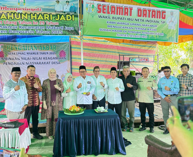 Dalam rangka memperingati Hari Ulang Tahun (HUT) Desa Upang Makmur, Kecamatan Makarti jaya, Kabupaten Banyuasin, yang ke-29 tahun 2025. Pemerintah Desa Upang Makmur menggelar Pengajian Akbar dan do’a bersama dengan tema ‘Bersinergi Membangun Desa, Menuju Masyarakat Makmur Sejahtera, Berakhlak dan Bermanfaat. Minggu (28/9/2025)