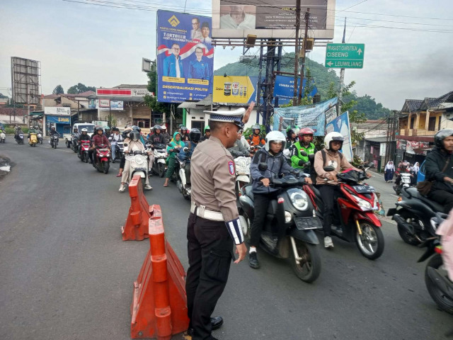 Polsek Ciampea Polres Bogor Gelar Pengaturan Lalu Lintas Pagi Hari untuk Kelancaran Aktivitas Warga