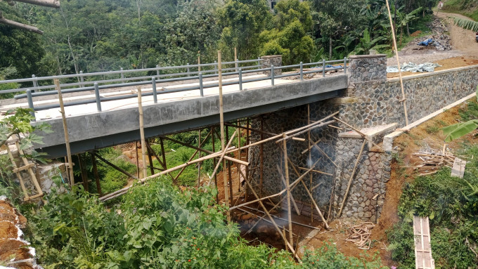 ”Kami masih menunggu bambu untuk bantalan jalan, sedangkan paket lainnya relatif sudah selesai, hanya menuntaskan beberapa pekerjaan kecil lainnya,” ujar Apih Ujang.
