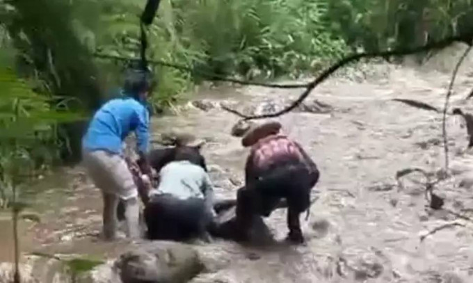 Mengetahui dua wisatawan terseret arus, petugas loket dan pengelola segera turun membantu dengan peralatan seadanya, termasuk bambu dan tali.