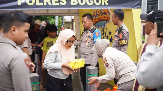 Polres Bogor Bagikan Takjil dan Makan Gratis untuk Masyarakat di Depan Mako