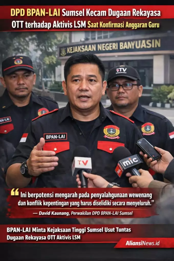 DPD BPAN-LAI Sumsel Mengecam Dugaan Rekayasa OTT Terhadap Aktivis LSM yang Konfirmasi Anggaran Guru