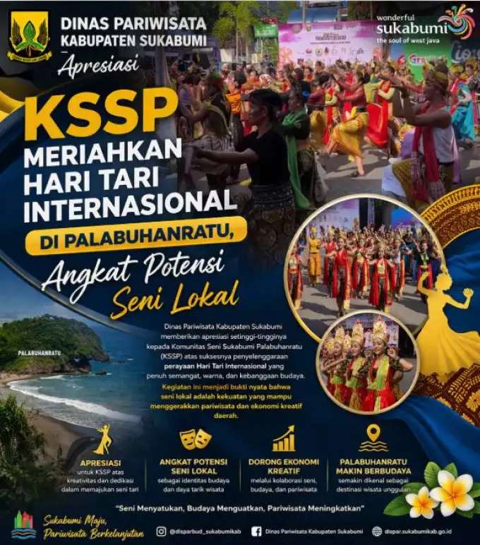 Dinas Pariwisata Kabupaten Sukabumi Apresiasi KSSP Meriahkan Hari Tari Internasional di Palabuhanratu, Angkat Potensi Seni Lokal