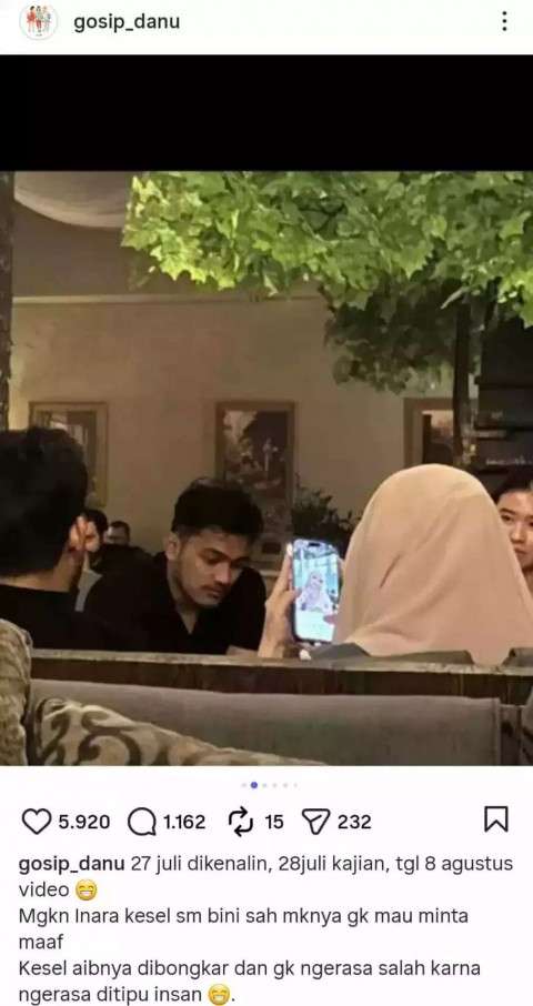 Melalui unggahan yang dibagikan ulang oleh akun Instagram @gosip_danu, sejumlah netizen menyampaikan bahwa pertemuan Inara dan Insanul terjadi lebih awal dari yang diakui.