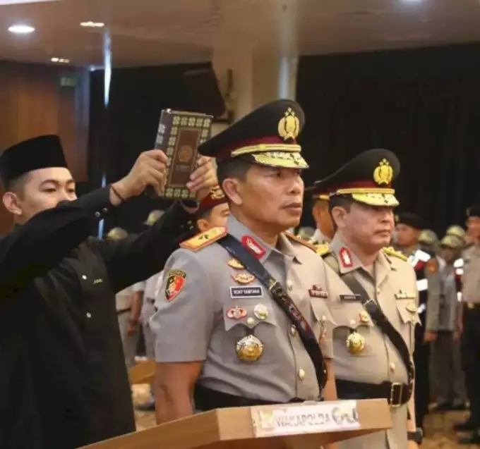 Prosesi sertijab berlangsung khidmat, diawali dengan penghormatan pasukan, pembacaan keputusan Kapolri, hingga pengambilan sumpah jabatan yang disaksikan rohaniwan dan jajaran pimpinan Polri.