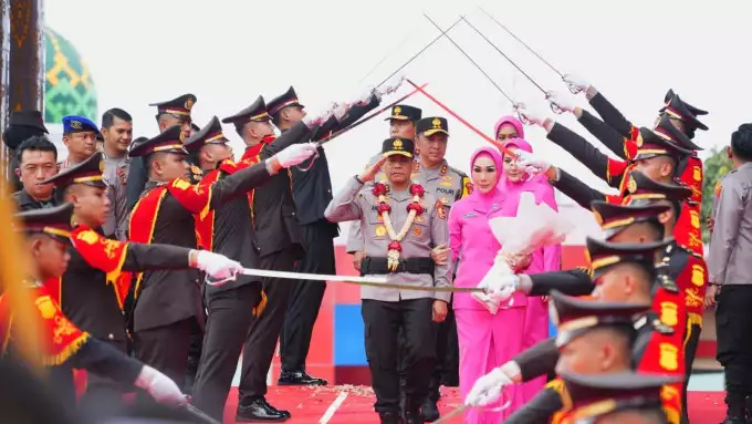 Momen pelepasan berlangsung khidmat dan penuh rasa kekeluargaan. Tradisi pedang pora mengiringi langkah Irjen Pol Andi Rian R Djajadi ,SIK,M.H beserta isteri saat berpamitan dengan seluruh jajaran Polda Sumsel sebagai bentuk penghormatan atas pengabdian dan dedikasinya