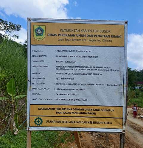 Bogor - Aliansinews id. Warga desa Cileuksa Kecamatan Sukajaya Kabupaten Bogor melaporkan mangkraknya pengerjaan proyek Jembatan Cisali di jalan Kiarabeha-Pasirmadang-Cileuksa.