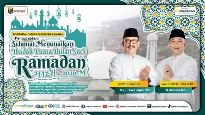 Dalam rangka menyambut datangnya Bulan Suci Ramadan 1447 Hijriah / 2026 Masehi, Pemerintah Kabupaten Sukabumi menyampaikan ucapan: