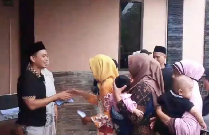 Usut punya usut ternyata Niki Saputra dan keluarga sedang melakukan giat berbagi zakat kepada masyarakat di kediamannya, tepatnya di Desa Cigudeg RT 01 RW 17, Kecamatan Cigudeg, Kabupaten Bogor.