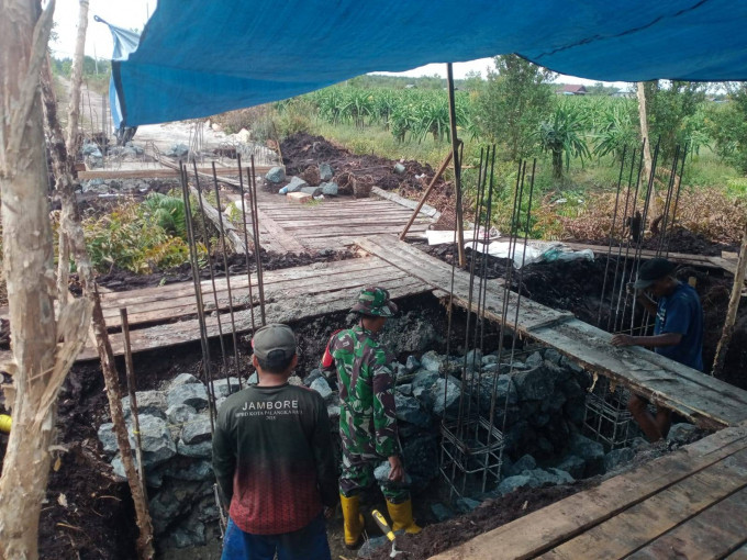 Palangka Raya - Aliansinews id. Pembangunan Jembatan Garuda yang ada di Kelurahan Kalampangan Kecamatan Sabangau Kota Palangka Raya menunjukkan progres yang sangat signifikan. Memasuki tahap penting, anggota TNI bersama warga setempat terlihat kompak melaksanakan lanjutan pengerjaan jembatan , Rabu (22/4/2026).