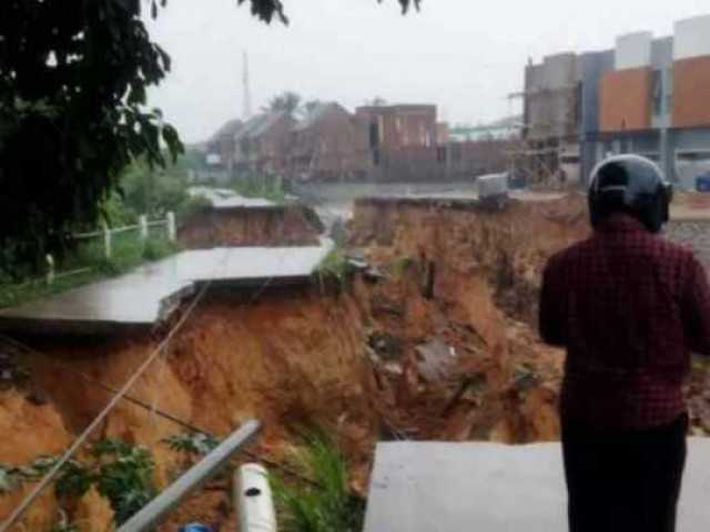 Dari hasil analisa, penyebab longsor karena hujan deras dengan intensitas tinggi yang menyebabkan air sungai mengikis jalan.
