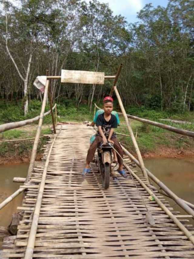 Jembatan Desa Trikarya rusak diterjang air pada saat banjir ditahun 2018 lalu. Masyarakat sekitar keluhkan susahnya akses mereka untuk menyadap karet di kebun karena ketiadaan jembatan. Sehingga pada akhirnya masyarakat desa Trikarya membangun secara swadaya jembatan yang menghubungkan pemukiman dan kebun rakyat tersebut.