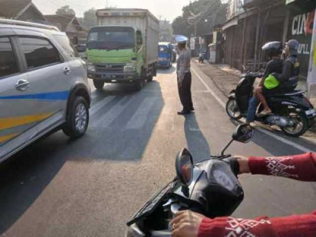 Kanit Lantas Polsek Ciampea Polres Bogor Akp Lalu Nasrun bersama anggota membantu masyarakat mengatur lalulintas dan ketika hendak menyebrang jalan, petugas juga melakukan pengaturan pengendara kendaraan bermotor agar terciptanya kamseltibcar lantas.