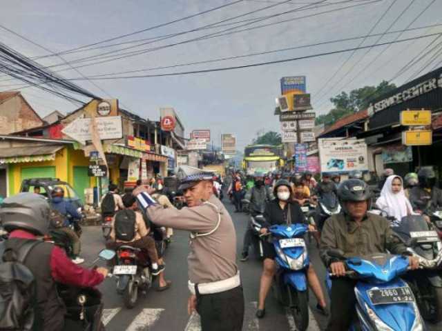 Anggota Lantas Polsek Ciampea Polres Bogor membantu masyarakat melakukan pengaturan lalu lintas di titik titik rawan kemacetan serta petugas juga melakukan pengaturan terhadap anak-anak yang menyebrang menuju sekolah.
