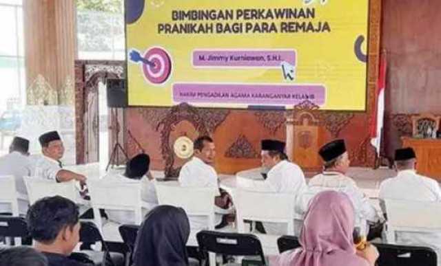 Foto: Hakim Pengadilan Agama Kelas IB Karanganyar M. Jimmy Kurniawan memberi bimbingan kepada para calon pengantin di Pendapa RM Said. (Dok)