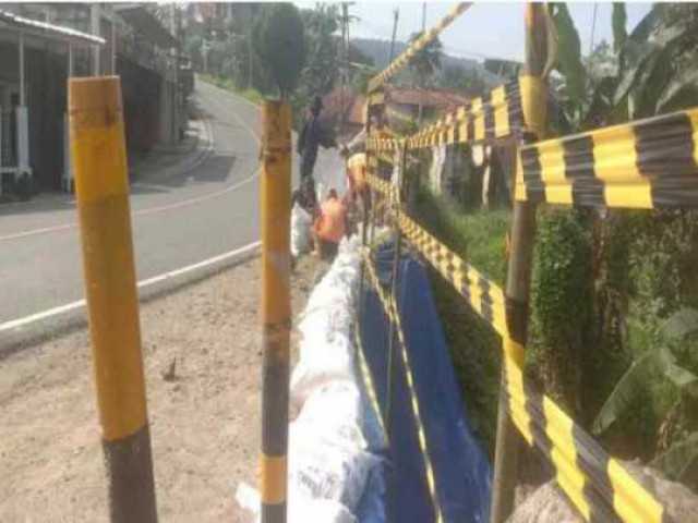 Kata dia, sejumlah pekerja mulai memasang tiang terbuat dari bambu di Jalan Nasional di Bogor yang longsor itu, serta memasang garis pengaman.