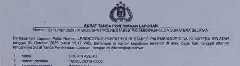 Kasus tersebut telah dilaporkan ke Polrestabes Palembang dengan nomor laporan LP: B/3020/X/2025/SPKT/POLRESTABES PALEMBANG, tertanggal 1 Oktober 2025 pukul 15.17 WIB.