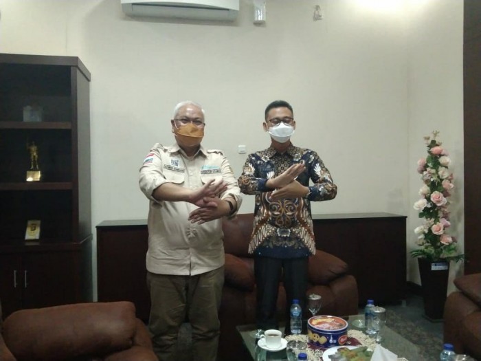 OKU TIMUR. Media AI – Wakil Bupati OKU Timur H.Muhammad Adi Nugraha Purna Yudha menerima kunjungan Direktur Utama Bank Sumsel Babel Achmad Syamsudin beserta Direksi di Ruang Audiensi Wakil Bupati, Jumat (12/3/21).