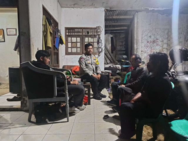 Dalam sambangnya, Bripka Angga Juhara berdialog dengan warga dan petugas ronda malam.