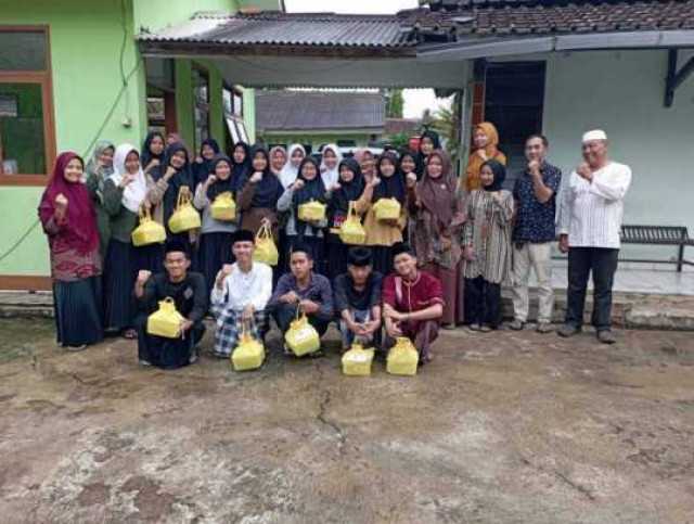 Walau ditengah gerimis, suasana berbagu rantang cinta tersebut berlangsung akrab dan ceria,.Hadir para santriwan dan santriwati didampingi para pengasuh.