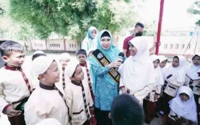 "Untuk itu saya ingin anak-anak happy, mendengarkan dongeng, mengambil pesan dari dongeng tersebut, kita hari ini bersenang-senang." Tutur Bunda.