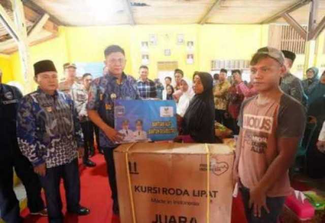 Bupati Enos Serahkan Paket Sembako Untuk Anak Yatim dan 3 Kursi Roda Untuk Disabilitas