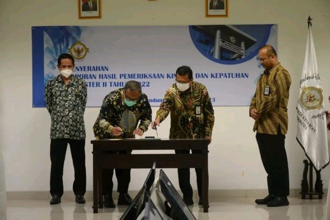 aliansinews.id - Sukabumi, Bupati Sukabumi H. Marwan Hamami menerima laporan hasil pemeriksaan (LHP) kinerja daerahnya dari BPK RI Perwakilan Jawa Barat di Bandung, Kamis, 5 Januari 2023. LHP Kinerja yang diterimanya ini, terkait efektivitas upaya pemerintah daerah dalam penyediaan akses air minum layak dan aman kepada masyarakat tahun anggaran 2020 sampai 2022 semester I pada Pemkab Sukabumi.
