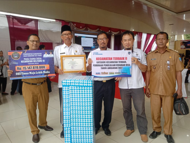 Aliansi Indonesia - Bupati OKU Timur Ir. H. Lanosin S.T memberikan penghargaan Kepada 3 Kecamatan dan 6 Desa di Kabupaten OKU Timur. Penghargaan ini diserahkan Bupati didampingi Ketua DPRD dan Kadin PMD, disela Penyerahan Simbolis Dana Desa (DD) Tahun 2023 yang berlangsung di Balai Rakyat Pemkab OKU Timur, Rabu (22/2/2023).