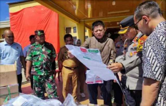Aliansi Indonesia - Bupati OKU Timur Ir. H. Lanosin, M.T. hadiri Pemusnahan Surat Suara Pemilu yang rusak, cacat dan berlebih di Pos Keamanan Gudang Logistik Pemilu Martapura. Selasa (13/02/2024).