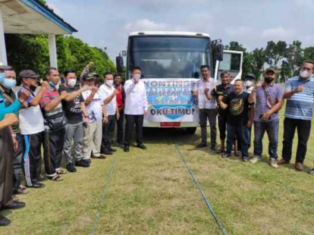 Bertempat di Lapangan KONI Belitang, Bupati OKU Timur melakukan pelepasan Kontingen Tim Sepakbola Usia 45 Tahun atau Old Star OKU Raya untuk bertanding, Jum'at (22/10/21).