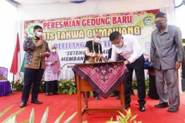 OKU Timur, Media AI - Pembangunan Gedung baru Madrasah Tsanawiyah (MTs) Taqwa Belitang, akhirnya selesai dan siap digunakan. Peresmian dilakukan oleh Bupati Ogan Komering Ulu Timur H. Lanosin ST, Rabu (08/09/21).