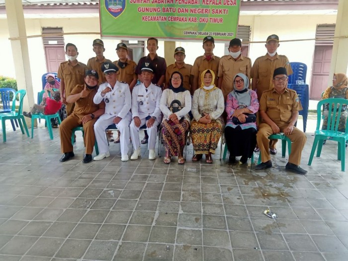 Desa Gunung Batu dari Kepala Desa yang lama Humaidi digantikan oleh PJS Hasyim dan Desa Negeri Sakti dari Kepala Desa yang lama Akmal Sukri digantikan PJS Abusamah. Turut hadir dalam pelantikan tersebut Kapolsek Cempaka, Danramil Cempaka, KUA Cempaka, Tim Penggerak PKK Kecamatan Cempaka, Para Kepala Desa Se-Kecamatan Cempaka, seluruh staf Kecamatan Cempaka serta para Perangkat Desa dan BPD dari masing-masing Desa yang di lantik.