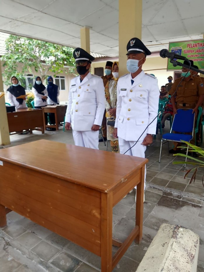 OKU Timur, Media AI – Pelantikan serta pengucapan sumpah jabatan kepada dua penjabat sementara (PJS) Kepala Desa yakni Desa Gunung Batu dan Desa Negeri Sakti Kecamatan Cempaka, kedua desa tersebut masing-masing yang dilantik sekaligus pengangkatan sumpah jabatannya oleh Camat Cempaka Arisman, S.Sos, M.M Bertempat di Aula Kecamatan Cempaka, Selasa (23/2/21)
