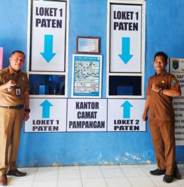 Pelayanan publik di kecamatan Pampangan yang proses pengelolaannya, mulai dari permohonan sampai ke tahap terbitnya dokumen dilakukan dalam satu tempat melalui satu loket pelayanan. Warga cukup menyerahkan berkas ke petugas meja/loket pelayanan, duduk menunggu sejenak, kemudian dipanggil untuk menerima dokumen yang sudah selesai.terangnya