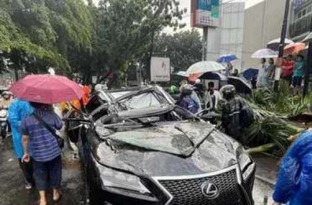 Foto: Pengemudi Lexus meninggal usai tertimpa pohon tumbang.