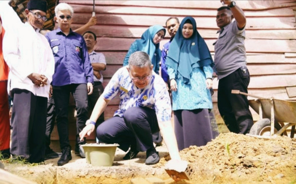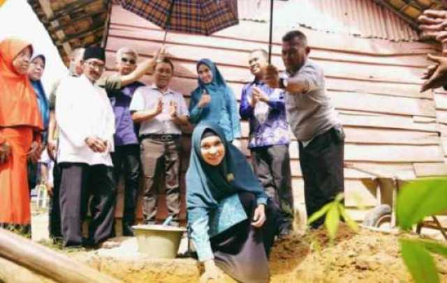 Peletakan batu pertama pembangunan Rumah Marto Utomo dan Konip Irwandi ini dilakukan langsung oleh Ketua TP. PKK Kabupaten OKU Timur dr. Sheila Noberta, Sp.A., M.Kes.