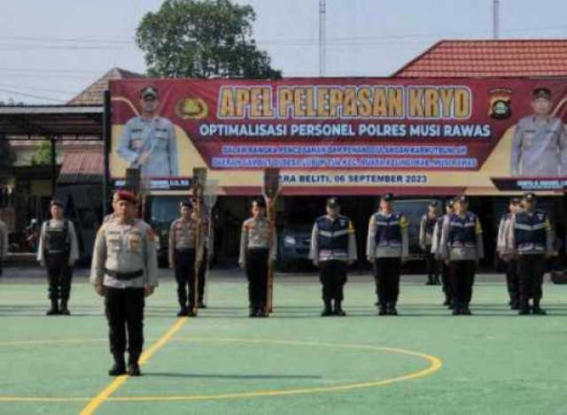 Menggelar Apel Pelepasan KRYD Optimalisasi Personel Polres Mura, Dalam Rangka Pencegahan dan Penanggulangan Karhutlabun Daerah Gambut di Desa Lubuk Tua, Kecamatan Muara Kelingi, Kabupaten Mura.