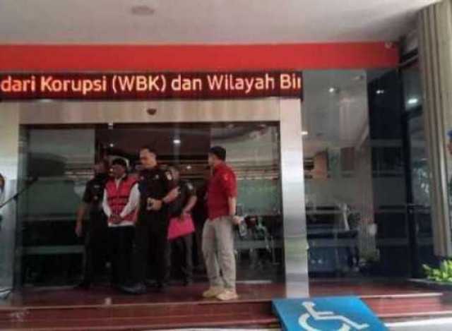 Foto: Menteri Kominfo Jhonny G Plate berompi pink ditetapkan sebagai tersangka korupsi proyek pembangunan BTS Kominfo, Rabu (17/5/2023).