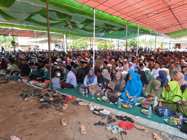 Ribuan anggota Pengajian Akbar Silaturahmi Budaya Memperingati Tahun Baru Islam  1446 Hijriah/2024 M yang dilaksanakan di Halaman Musholla Baiturrahim Desa Nusakarta Kecamatan Air Sugihan Do'akan HM Djakfar Shodiq Jadi Bupati OKI periode 2025-2030, Minggu (29/7/2024)