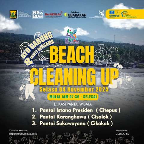 Dengan semangat “Sukabumi Bersih, Wisata Berkah”, Dinas Pariwisata Kabupaten Sukabumi terus berupaya menumbuhkan kepedulian lingkungan sebagai bagian dari pembangunan pariwisata yang berkelanjutan.