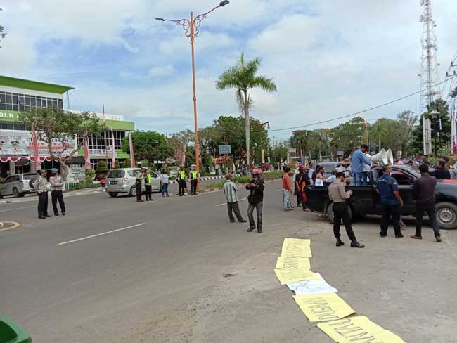 Massa Aksi mendesak Ketua DPRD Musi Banyuasin untuk melakukan Audiensi dan mengusut tuntas siapa dalang permainan Pokok Pikiran yang diduga menjadi milik masing-masing Anggota DPRD.