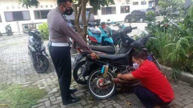 Semarang - Satuan Lalu Lintas (Satlantas) Polrestabes Semarang gelar operasi guna memberantas knalpot brong karena dianggap menyalahi aturan spektek pabrik dan mengganggu kenyamanan masyarakat, Selasa (11/01/2022).