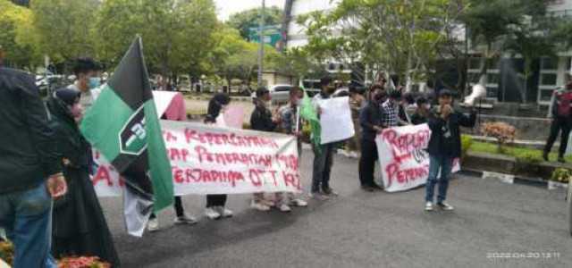 Orasi Masyarakat yang di suarakan oleh para Aliansi Mahasiswa dari Organisasi IMMUBA (Ikatan Mahasiswa Musi Banyuasin) dan HMI menyuarakan secara lantang saran, tuntutan, kepedulian terhadap Daerah kita tercinta ini mendatangi Kantor Bupati agar merespon poin demi poin tuntutan bersama didepan gerbang Pemkab Jalan Kolonel Wahid Udin Kota Sekayu Musi Banyuasin Sumsel, Rabu 20/04/2022.