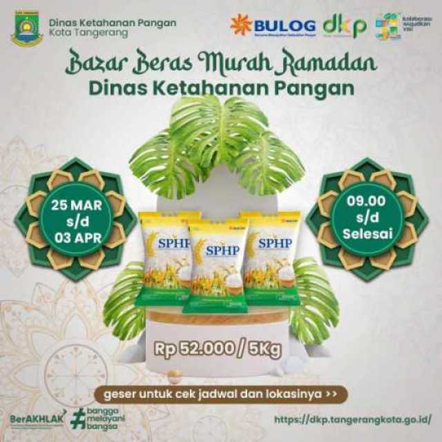 AliansiNews.id-Kota Tangerang, Pemerintah Kota (Pemkot) Tangerang melalui Dinas Ketahanan Pangan (DKP) bekerja sama dengan BULOG Tangerang, akan kembali mengadakan Bazar Beras Murah Ramadan, yang akan dilaksanakan di 13 kecamatan mulai dari 25 Maret hingga 3 April mendatang.