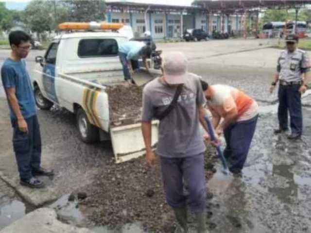 Menanggapi hal itu Kepala Terminal (Kater) Leuwiliang Wahyu mengatakan, kondisi lubang dekat terminal tersebut sangat membahayakan pengguna jalan. Untuk itu dirinya berinisiatif melakukan perbaikan sementara di lubang tersebut.